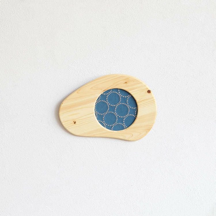 - ファッションブランド「mina perhonen」の生地を、日本の茶室の円窓から眺めるように味わうことができるアートパネル。庭の景観を丸いフレームで切り抜く円窓の体験は、自然の美しさを切り取るミナペルホネンの世界観と通じると考え、再構築したデザインです。有機的なフォルムのパネルは、自然のゆらぎを通じて感じる心地よさを暮らしの中に添えてくれます。