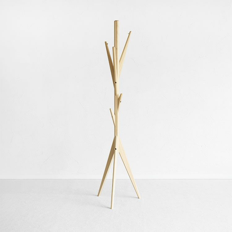 アシンメトリーに配置された枝のような6本のフックは、かけたものがぶつからないよう計算されたつくり。ハンガーを使った時はゆったりとエレガントに、ハンガーを使わずバサッとかけてもさまになる、そんな実用性とデザイン性のほど良いバランスを実現しました。