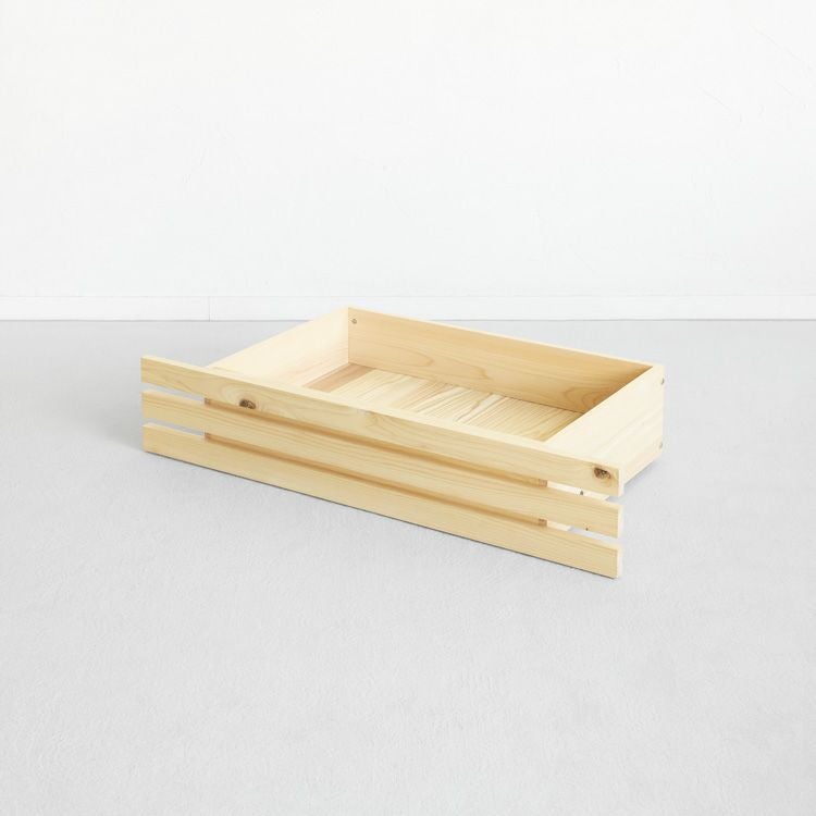 ベッドF単体のイメージを塗り替える、新たな価値を提案する収納ボックスです。ベッド側面と同じモチーフが繰り返されることによりリズムが生まれ、ベッドとの一体感を生み出しています。