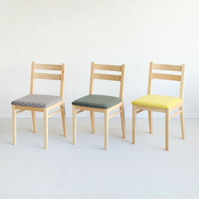表裏で色が異なる生地は、5万回ほどの摩擦で裏側の色が見えてきます。5万回というと、おおよそ20年から30年。フレーム部分のひのきも月日と共に味わい深く経年変化していくため、世代を越えて使い続けることができるチェアです。