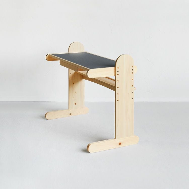 天板の端は少しだけ高さを設け囲いのようなつくりに。ものが落ちづらいため、勉強中の子どもの集中力を妨げません。