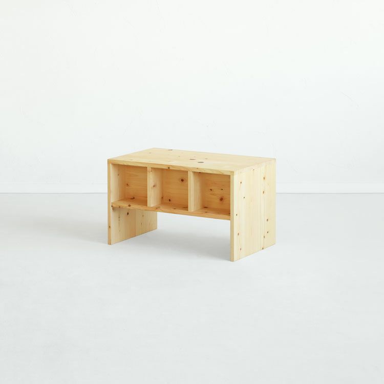 「テーブル」というカテゴリにおさまらない、テレビボードやディスプレイ棚、簡易チェアとしても使える汎用性が高い家具です。ライフスタイルの変化に対応しながら長く使い続けることができます。
