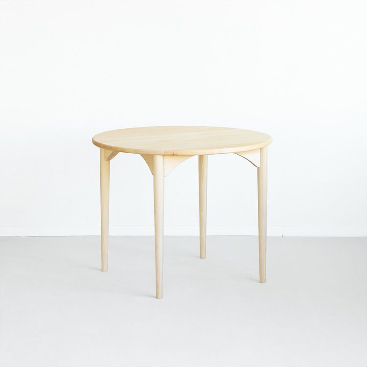 - ダイニングテーブルとしては珍しい、幕板がないデザインのラウンドテーブル。丸い天板と丸脚が組み合わさり、より軽やかですっきりとした印象を与えます。円卓は、床が見える面積が多いためリビングにヌケ感がつくれるメリットも。サイズは2人暮らしで使いやすい90cm。