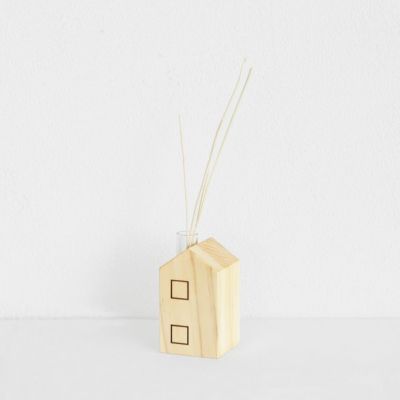 素材はキシルの家具と同じ、無垢100%。一般的な木製家具は、表面に薄いシートを貼った状態を「無垢の家具」と呼ぶこともありますが、キシルの場合は表面だけでなく中身も純度100%の無垢材を使用し、木が本来もっている力を最大限に引き出します。おうちの形をしたディフューザーは、素材見本としてもぜひお使いください。