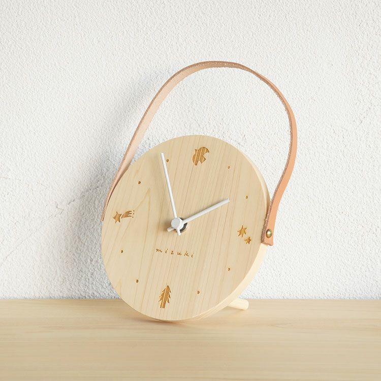 ベルト部分を引っ掛けて壁時計としても、付属のスタンド棒で置き時計としても使えます。お好きなスタイルでお楽しみください。