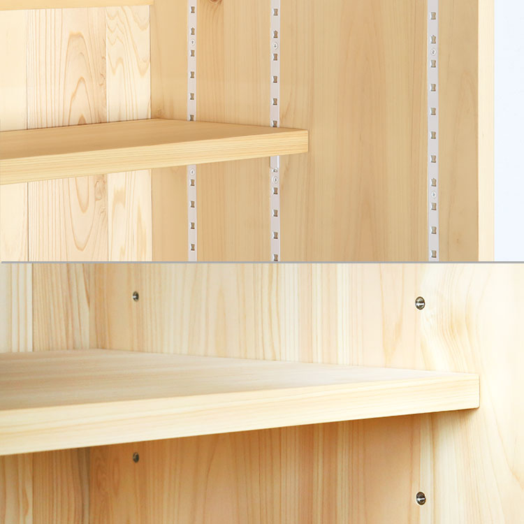 お皿やグラス、瓶など収納したいものに合わせて2cm刻みで高さ調節できるので、デッドスペースを減らせます。シンプルなシェルフタイプなので、木の心地よさがダイレクトに伝わってくるデザインです。