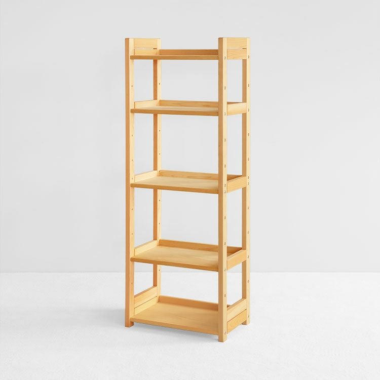各棚板の奥側には高さ約3cmの本どめ付き。本や雑貨が後ろへ落ちるのを防ぎ、安心して収納できます。