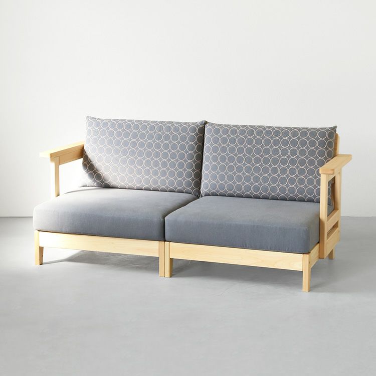 表裏で色が異なる生地は、5万回ほどの摩擦で裏側の生地が見えてきます。5万回というと、おおよそ20年から30年。フレーム部分のひのきも月日と共に味わい深く経年変化していくため、世代を越えて使い続けることができるソファです。