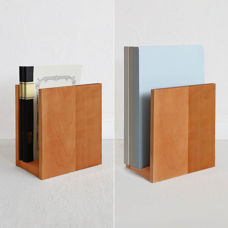 • 向きをかえるとディスプレイ棚に コの字ブックエンド さくら ブックスタンド 卓上 山桜 シンプル 木製