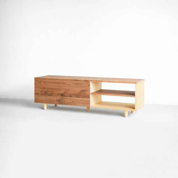 55型のテレビを置きやすいサイズ感。耐荷重は安心の約100kg。無垢のひのきは月日と共に強度を増していくため、長く使い続けることができる、一生もののテレビボードです。