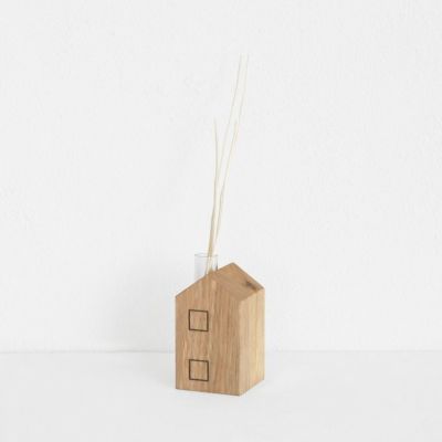 素材はキシルの家具と同じ、無垢100%。一般的な木製家具は、表面に薄いシートを貼った状態を「無垢の家具」と呼ぶこともありますが、キシルの場合は表面だけでなく中身も純度100%の無垢材を使用し、木が本来もっている力を最大限に引き出します。おうちの形をしたディフューザーは、素材見本としてもぜひお使いください。