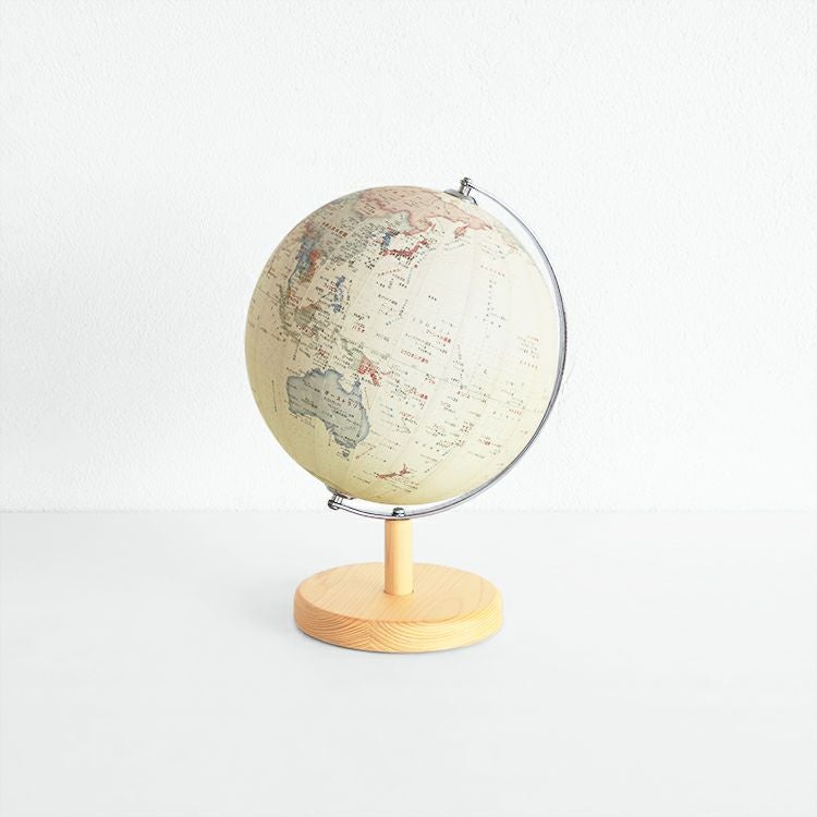 キシルの地球儀は、“子どもにも大人にも優しい仕様”。文字は通常の1.2倍、表面はテカリを抑えた質感でとても見やすいです。台座にはひのきを採用し、シンプルでどんなお部屋にもしっくりなじむようにデザインしました。
