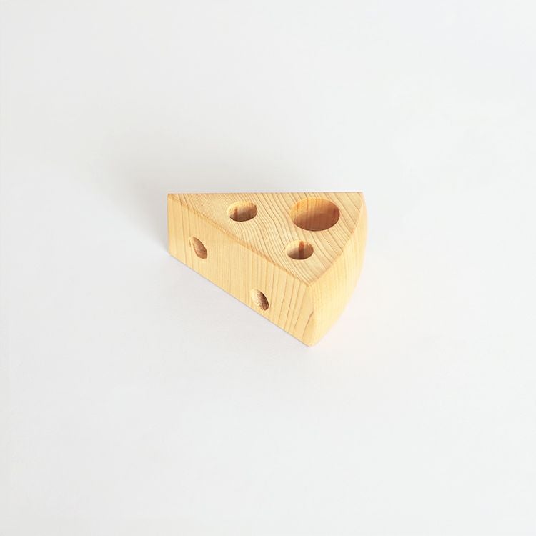 つい、なくしがちな印鑑。指定席は「玄関のチーズの中」と決めてしまいましょう! 大きな穴には一般的なシャチハタ、小さい穴には三文判やペンを立てることができます。