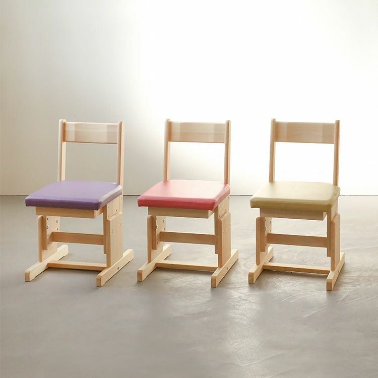 後からシンプルなデザインへ替えられることで、お子様のいまの「好き!」という気持ちをいちばん大切に、家具を選んでいただけますよ。もちろん、木の座面からカラー座面へ替えることもできます。